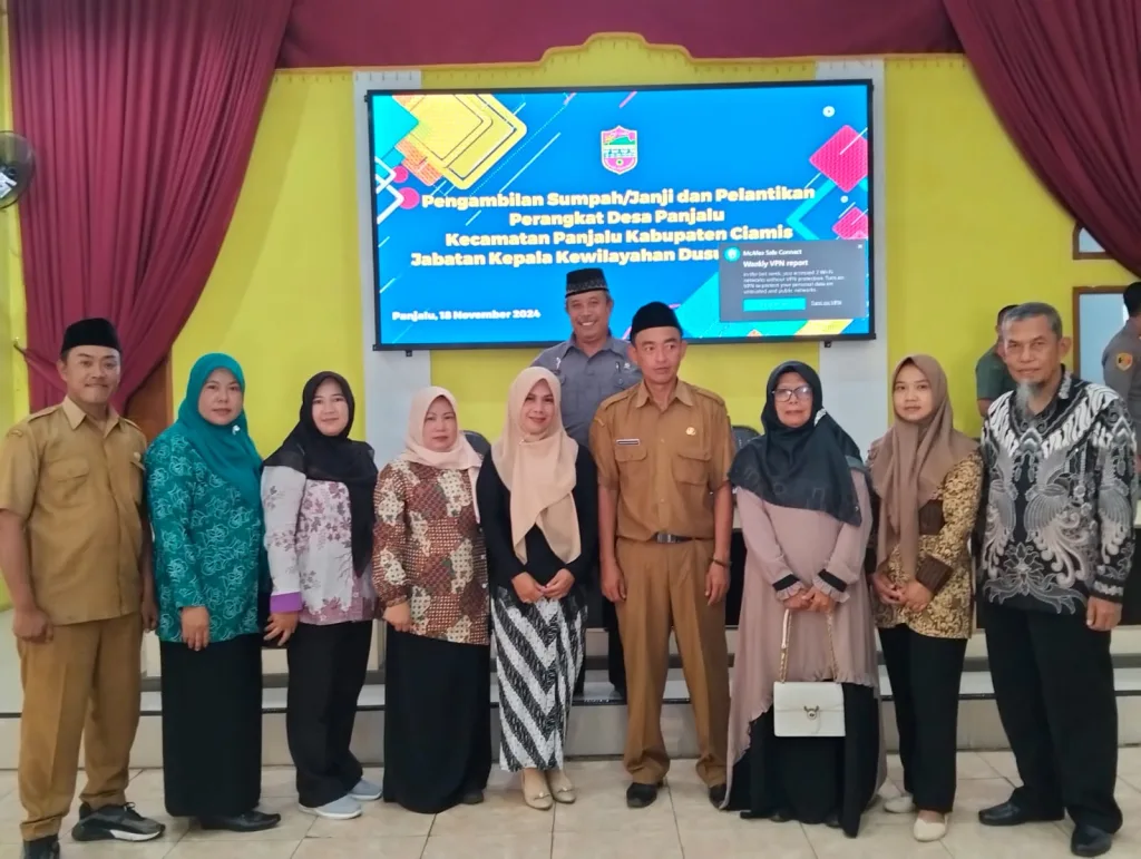 Senin, 18 November 2024, Aula Prabu Haryang Kantjana Desa Panjalu - Pengucapan sumpah dan pelantikan Kepala Wilayah Dusun Pabuaran, Desa Panjalu. Acara ini berlangsung lancar.