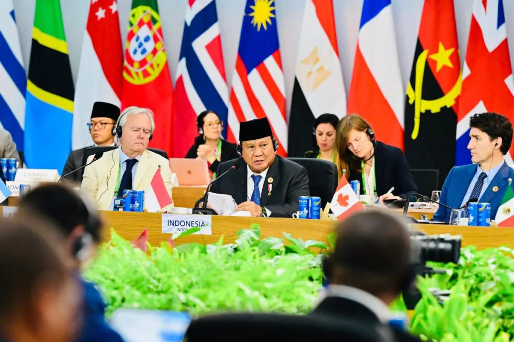 Presiden Prabowo menegaskan pentingnya tindakan kolektif dari anggota G20 untuk mendukung pembangunan berkelanjutan, khususnya dalam mengatasi dampak perubahan iklim. Presiden menjelaskan bahwa Indonesia merasakan dampak langsung dari perubahan iklim, seperti kenaikan permukaan laut di pesisir utara Jawa yang berdampak pada ratusan ribu hektare lahan produktif.